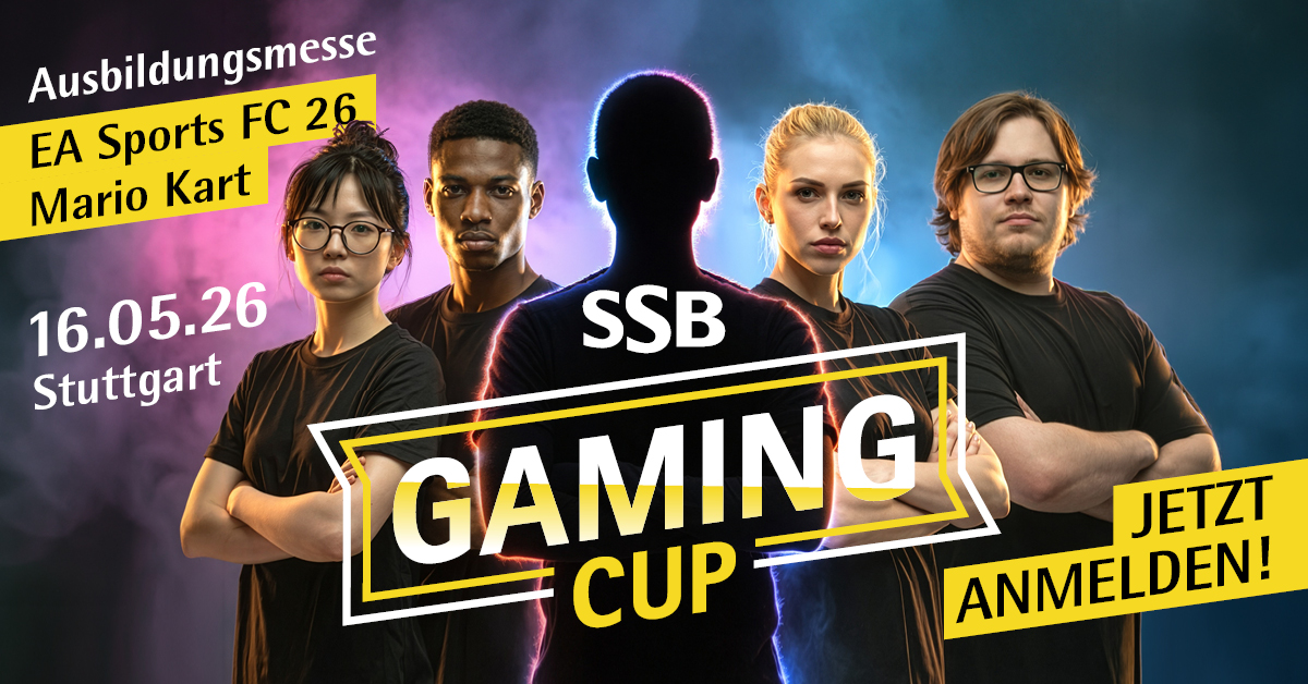Beim ersten SSB Gaming Cup am 16. Mai 2026 verbinden wir Gaming, Wettbewerb und Ausbildung. Dich erwarten spannende Turniere in EA SPORTS FC und Mario Kart, interaktive Challenges und tolle Gewinne. Gleichzeitig kannst du an unseren Ausbildungs- und Infoständen entdecken, wie vielfältig die Jobmöglichkeiten bei der SSB sind.