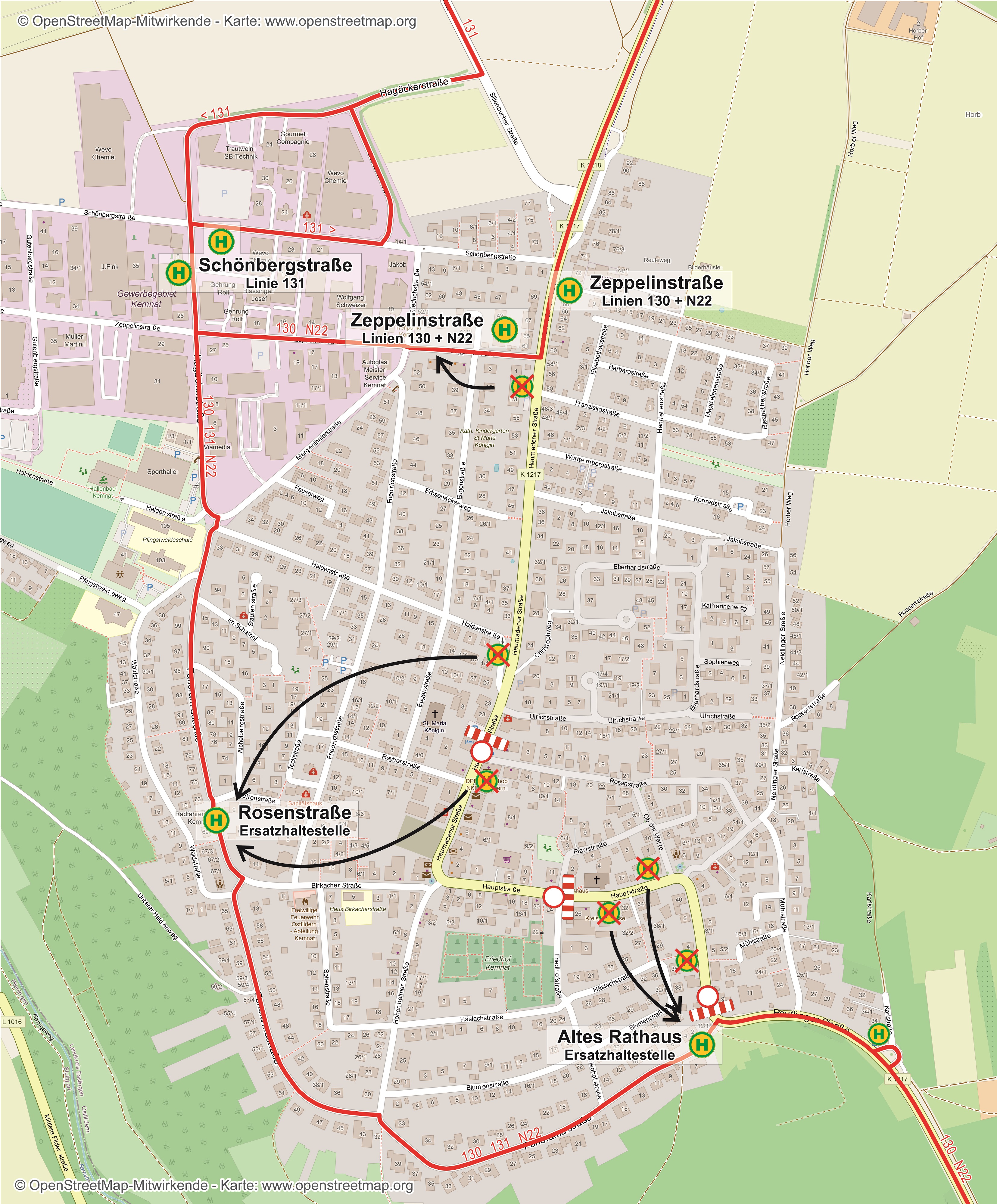 - Nur Linien 130 und N22: Die Haltestelle Zeppelinstraße Richtung Scharnhausen wird zur Haltestelle Zeppelinstraße (Pos. 3) in die Zeppelinstraße verlegt.