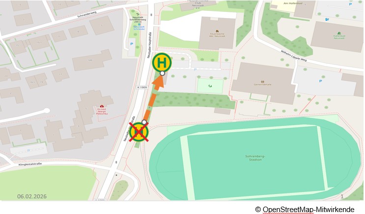 Von Dienstag, 10. Februar 2026 bis voraussichtlich Samstag, 21. Februar 2026 kann die Haltestelle Neustadt, Schneider von den Buslinien 201 in Richtung Bittenfeld Klingenstraße, 201A in Richtung Bittenfeld Klingenstraße und N24 in Richtung Bittenfeld Klingenstraße aufgrund von Bauarbeiten nicht angefahren werden.
