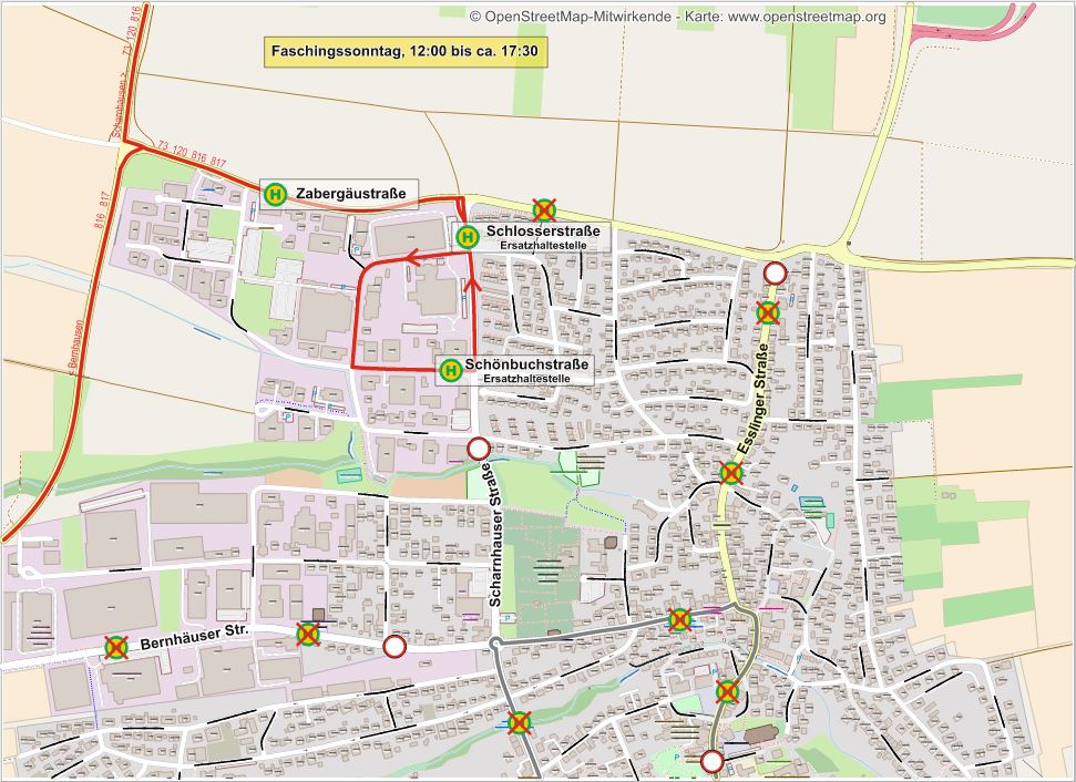 Die Haltestellen in Neuhausen zwischen Bernhäuser Weg und Schlosserstraße bzw. Novizenweg können im Veranstaltungszeitraum von den Linien 816 und 817 nicht angefahren werden.