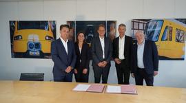 Foto von links: Michael Maischak, Vice President bei der KfW IPEX-Bank; Laura Heimburger, Vice President bei der KfW IPEX-Bank; Torsten Osterloh, Director bei der KfW IPEX-Bank; Mathias Hüske, Kaufmännischer Vorstand der SSB; Thomas Moser, Technischer Vorstand und Vorstandsprecher der SSB