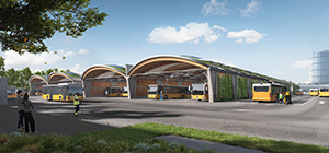 Visualisierung des geplanten Hallenbauwerks für den Busbetriebshof Gaisburg der SSB AG.