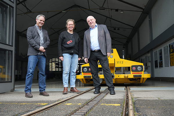 Ein Stück Klimaschutz im Stuttgarter Süden durch das Theater Rampe und die SSB: Dafür stehen Markus Schmieder, Umweltbeauftragter der SSB, Illona Schaal, Co-Geschäftsführerin und künstlerische Co-Leitung des Theaters RAMPE, sowie Thomas Moser, Vorstandssprecher der SSB.